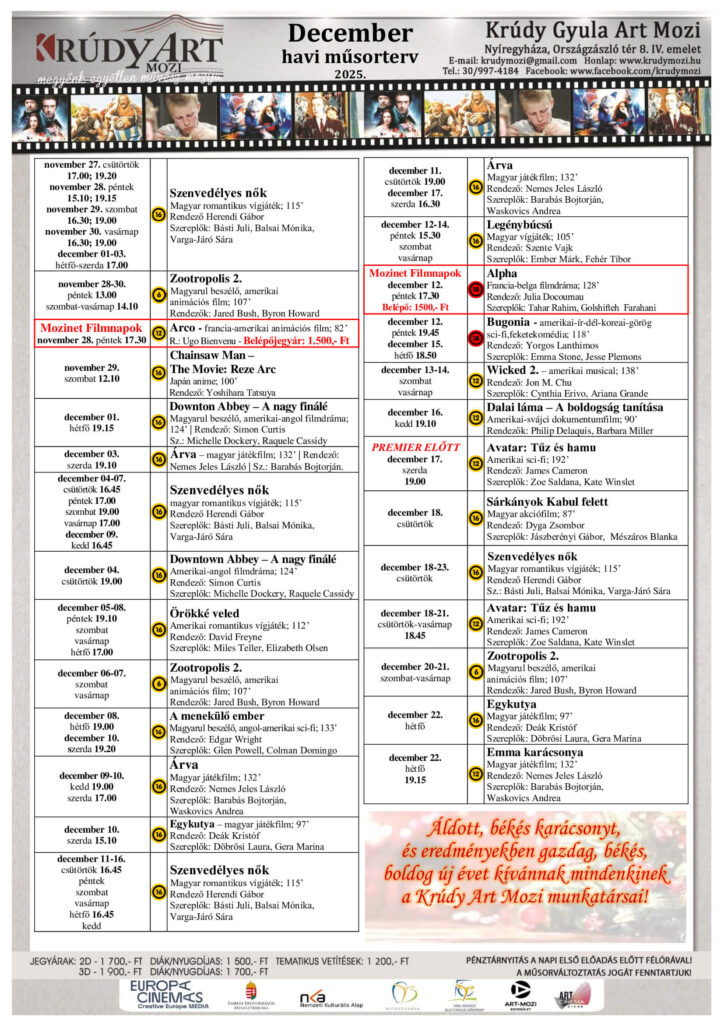 Ajándékozd meg magad egy jó filmmel – egész decemberben vár a Krúdy Art Mozi!