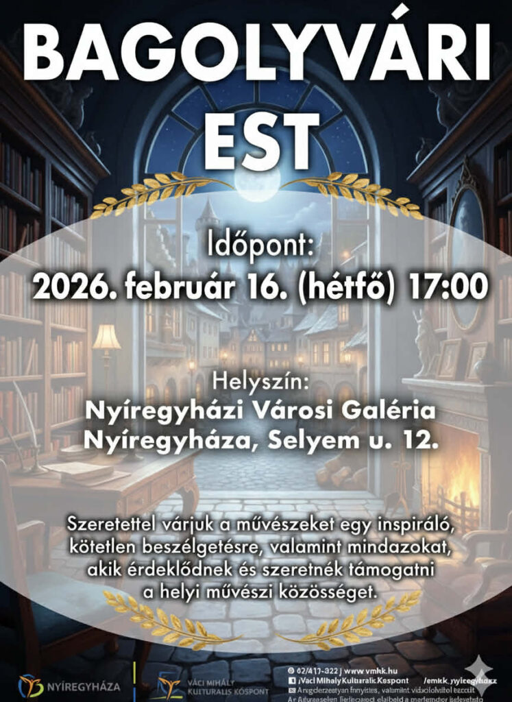 A Bagolyvári est egy múltidéző találkozás, ahol helyi művészek és művészetkedvelők kötetlen beszélgetésekben, inspiráló gondolatok mentén kapcsolódhatnak egymáshoz.