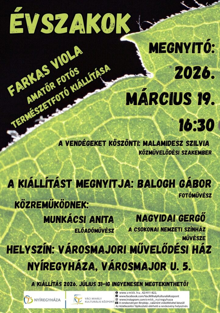 Helyszín: Városmajori Közösségi Ház, 4400 Nyíregyháza, Városmajor utca 5.
