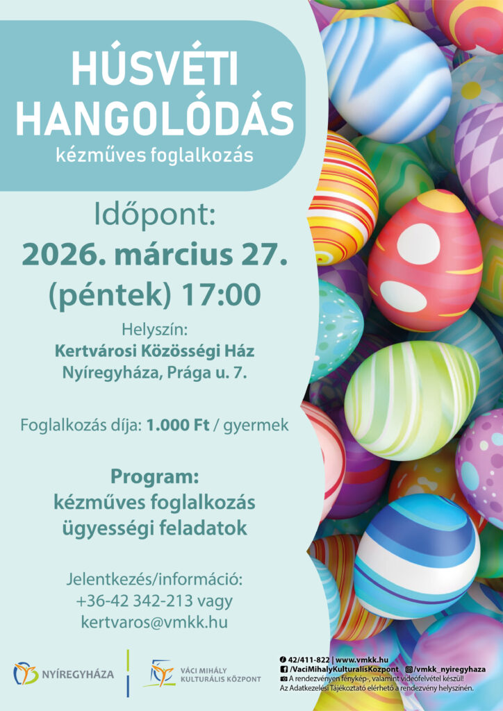 Helyszín: Kertvárosi Közösségi Ház, 4400 Nyíregyháza, Prága u. 7.