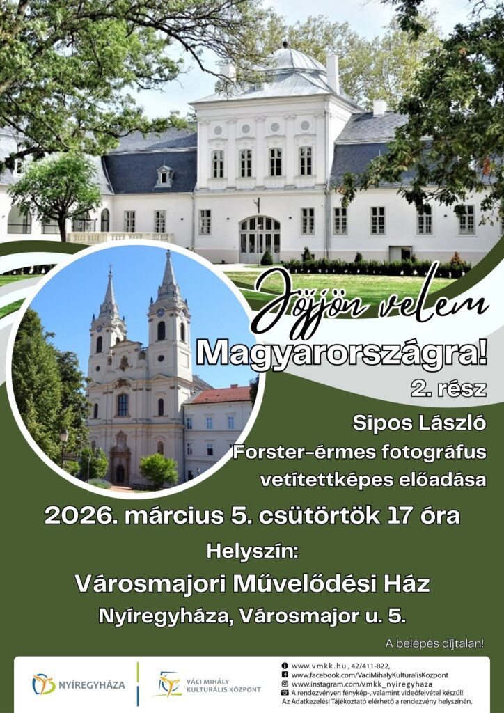 Fedezze fel Magyarország szépségeit Sipos László Forster-érmes fotográfus vetítettképes előadásán! Egy különleges vizuális utazás vár, ahol lenyűgöző felvételeken keresztül ismerheti meg hazánk értékeit, hangulatát és rejtett kincseit.