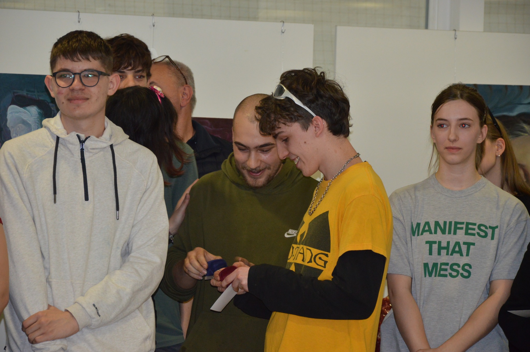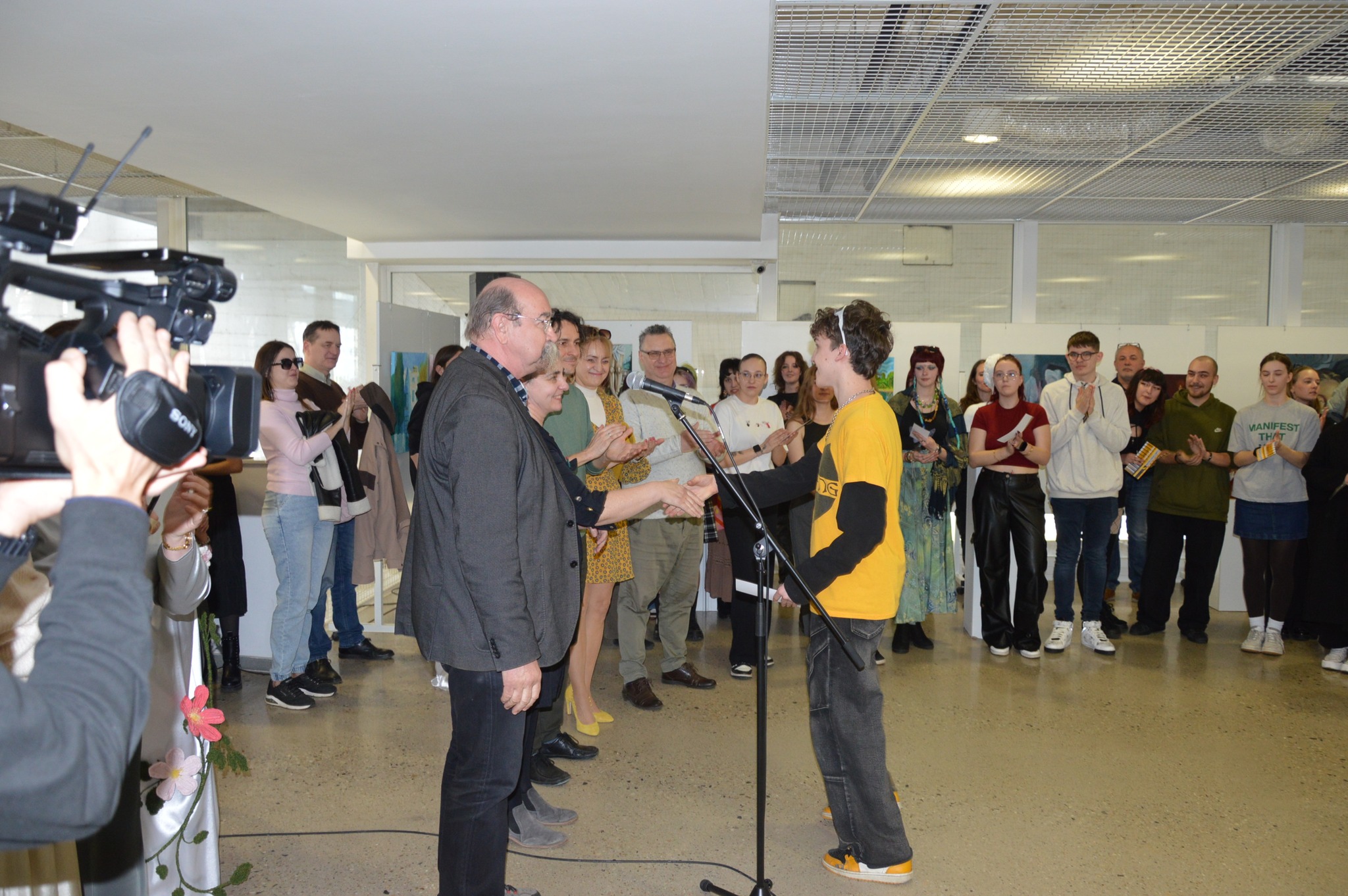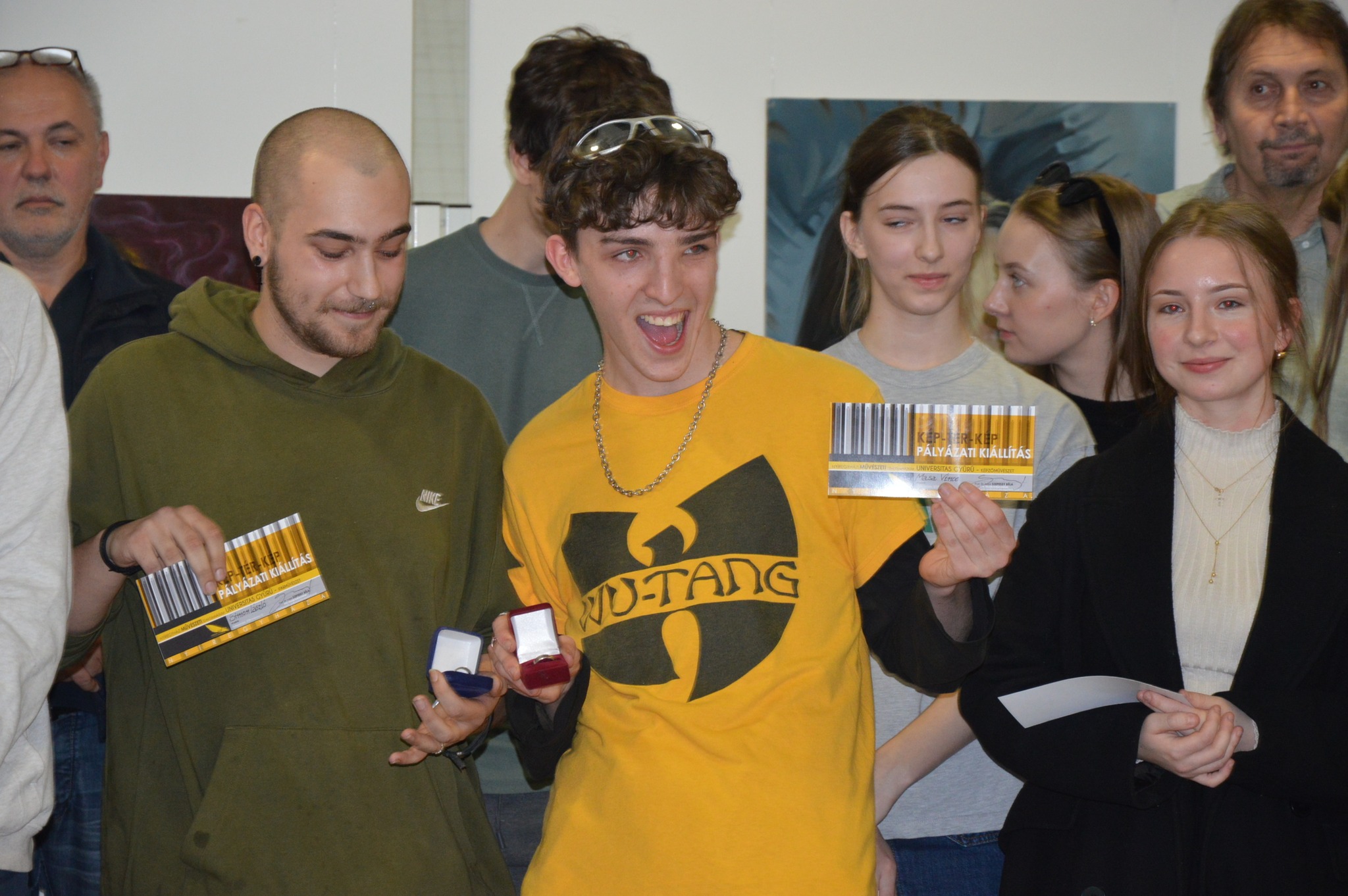 Szerda délután megnyílt a KÉP-TÉR-KÉP című pályázati vizsgakiállítás, amelyen a Nyíregyházi Művészeti Szakgimnázium végzős diákjai kaptak bemutatkozási lehetőséget az emeleti galériában. A szakmai zsűri értékelte a képző- és iparművészeti alkotásokat, és három díjat osztott ki a legjobbaknak. Emellett egy-egy tehetséges növendék vehette át az Universitas gyűrűt. ![]()